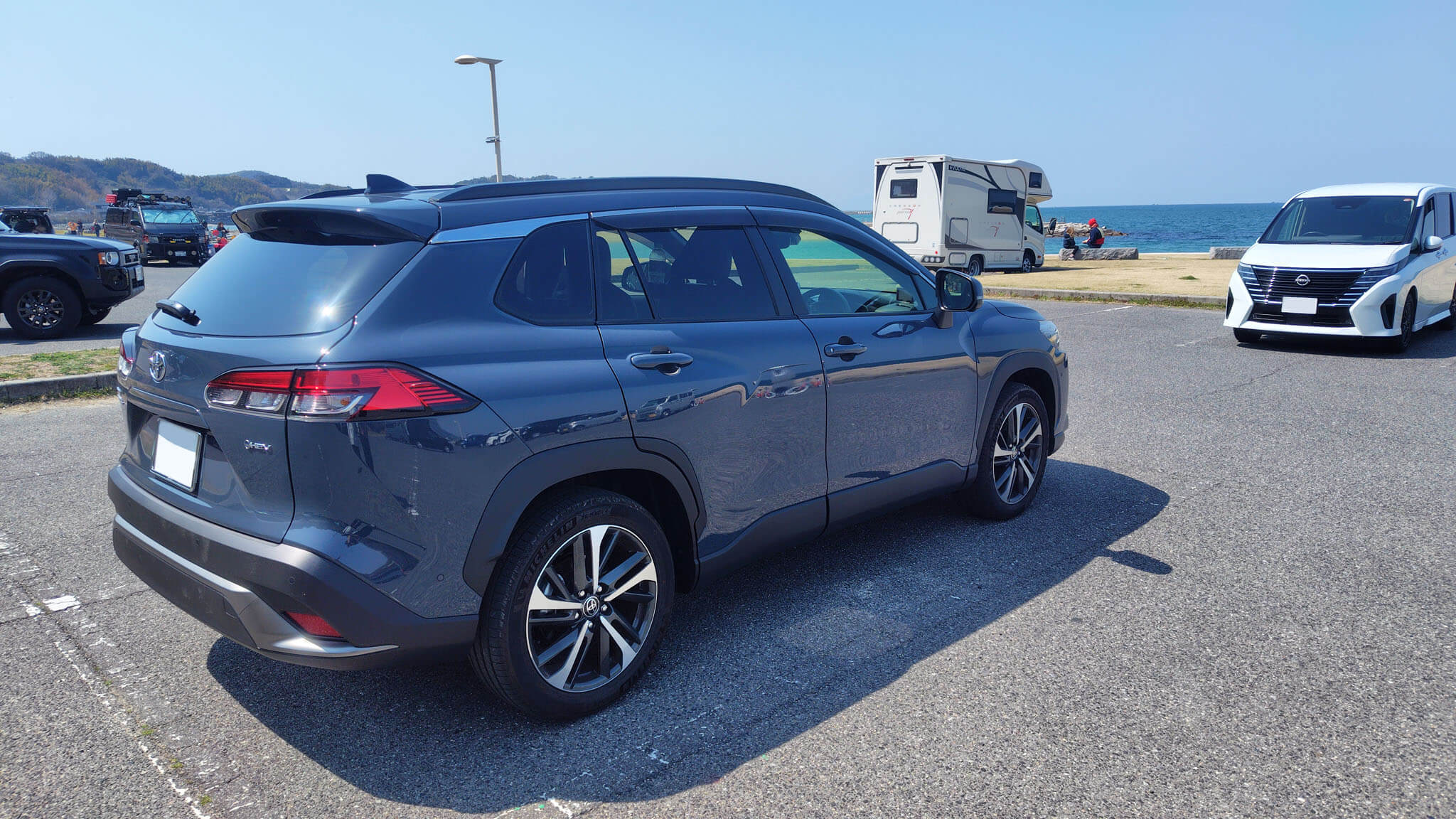 交通手段は愛車カローラクロスになります。